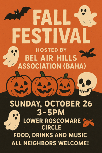 This is a neighborhood activity where all residents of Bel Air Hills are invited, regardless of BAHA membership. For the young or young-at-heart, you are welcome to attend in costume.