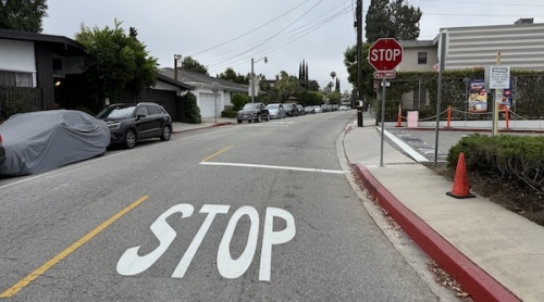Speed humps have been installed in front of Roscomare Road Elementary School. In addition to the new stop signs in front of the school, it is hoped that these speed humps will also help to slow down traffic, especially when our young students are being dropped off and picked up from school.